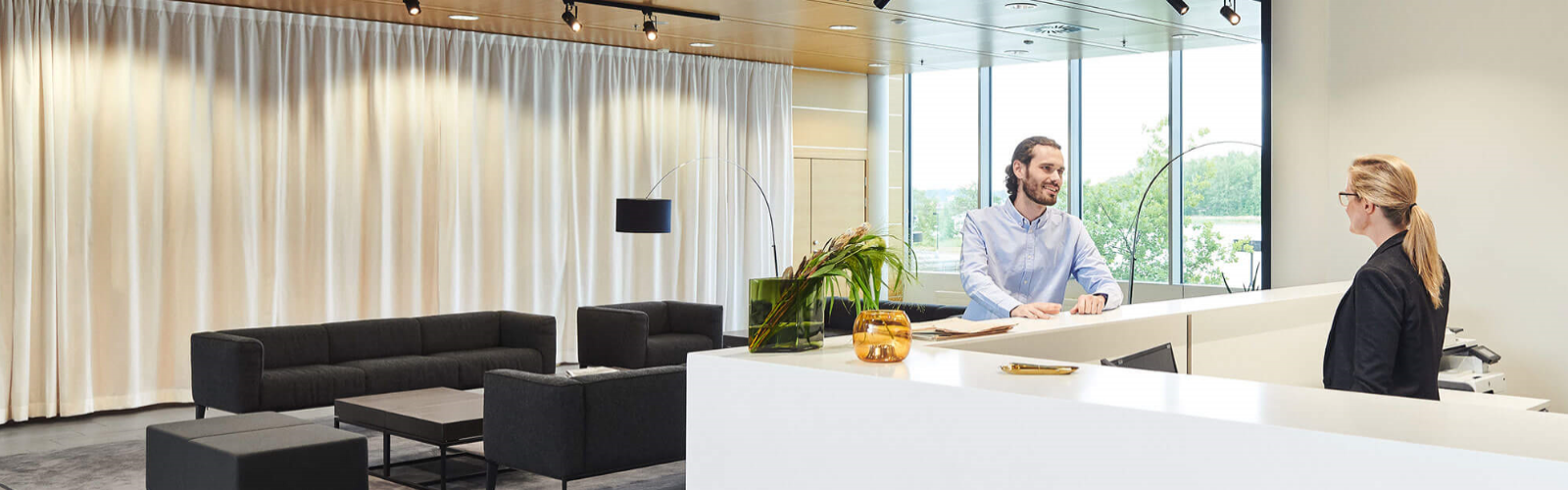Vastaanottohenkilökuntamme pitää huolta sujuvasta arjesta. He ottavat vieraat vastaan ja ilmoittavat sinulle heidän saapumisesta. Lisäksi he ottavat vastaan lähetykset. A- ja C-rakennusten vastaanotto- ja aulapalvelut sisältyvät aina vuokraan.